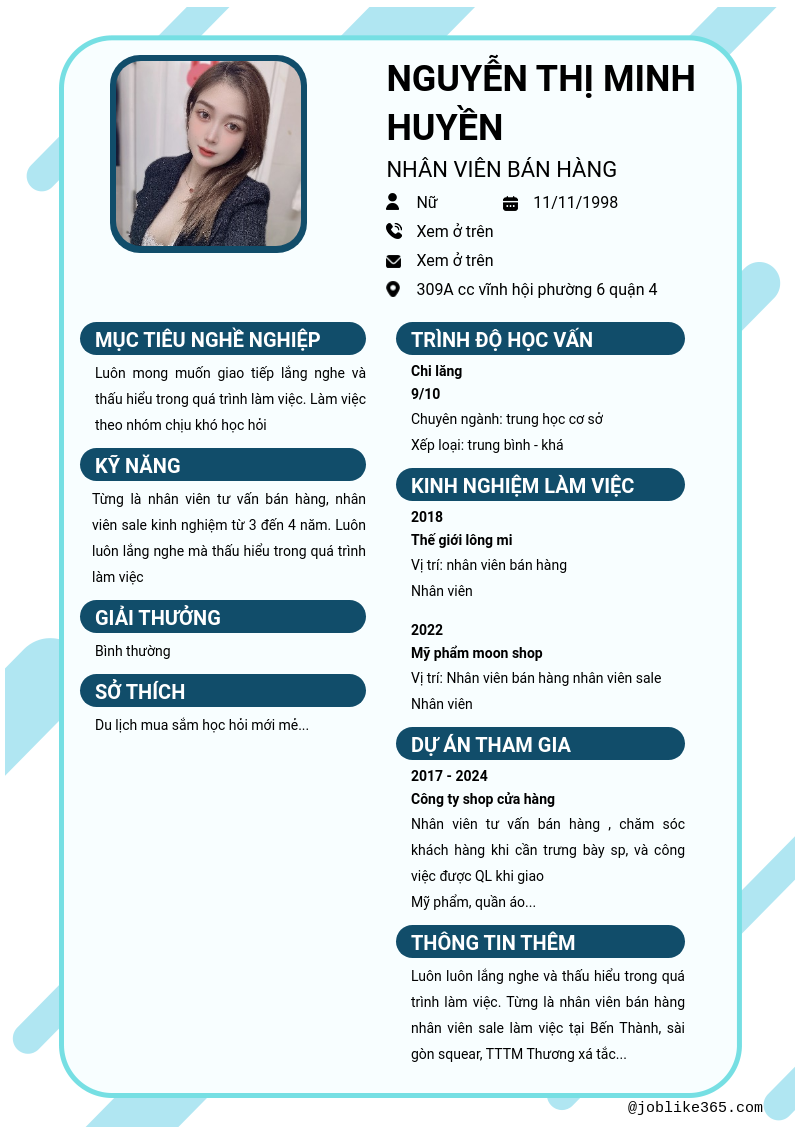 Xem hồ sơ ứng viên Nguyễn Thị Minh Huyền cần 2 điểm. Hồ sơ được cập nhật ngày: 18/04/2025
