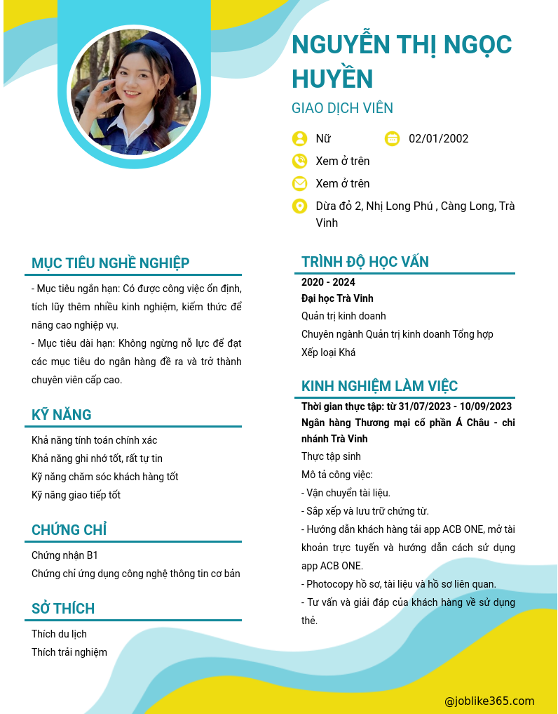 Xem hồ sơ ứng viên NGUYỄN THỊ NGỌC HUYỀN cần 2 điểm. Hồ sơ được cập nhật ngày: 06/06/2024