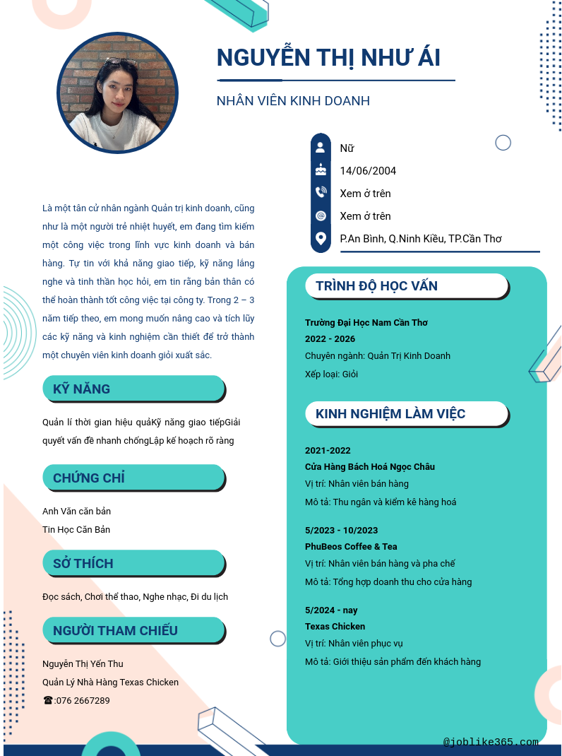 Xem hồ sơ ứng viên Nguyễn Thị Như Ái cần 2 điểm. Hồ sơ được cập nhật ngày: 07/12/2024