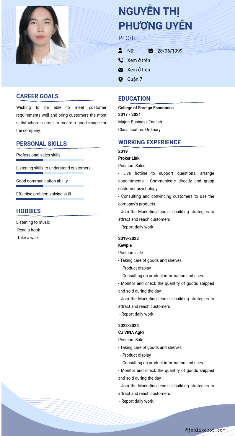 Xem hồ sơ ứng viên Nguyễn Thị Phương Uyên cần 2 điểm. Hồ sơ được cập nhật ngày: 20/10/2024