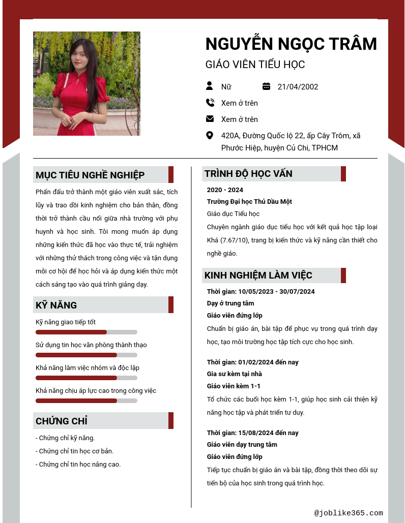 Xem hồ sơ ứng viên NGUYỄN ngọc trâm cần 2 điểm. Hồ sơ được cập nhật ngày: 04/06/2025