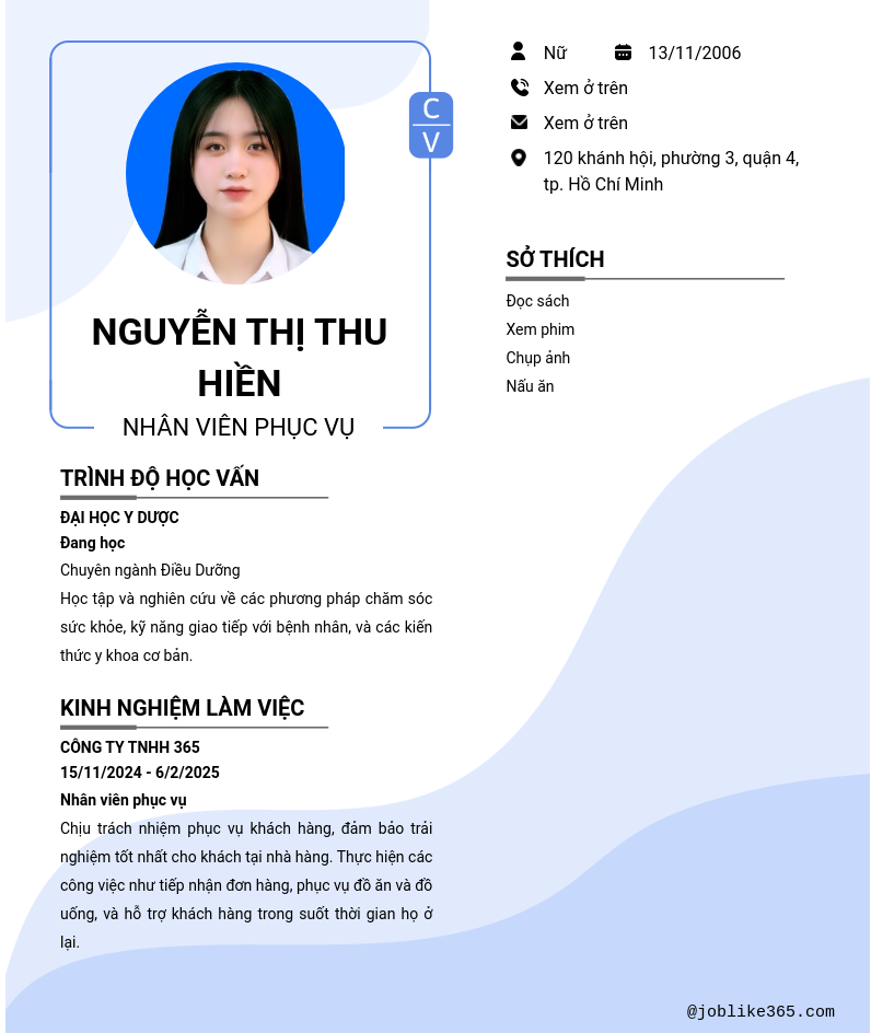 Xem hồ sơ ứng viên Nguyễn Thị Thu Hiền cần 2 điểm. Hồ sơ được cập nhật ngày: 16/08/2025