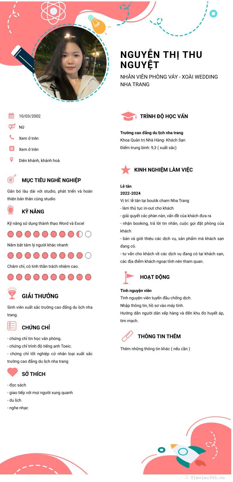Xem hồ sơ ứng viên Nguyễn thị thu nguyệt cần 2 điểm. Hồ sơ được cập nhật ngày: 21/10/2024