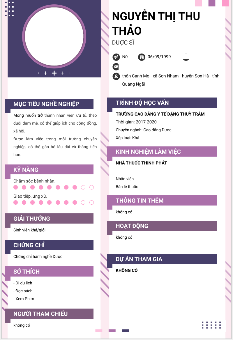 Xem hồ sơ ứng viên Nguyễn Thị Thu Thảo cần 2 điểm. Hồ sơ được cập nhật ngày: 25/10/2024