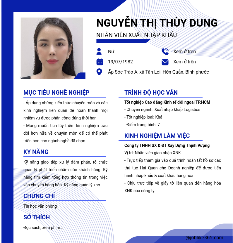 Xem hồ sơ ứng viên NGUYỄN THỊ THÙY DUNG cần 2 điểm. Hồ sơ được cập nhật ngày: 15/09/2024
