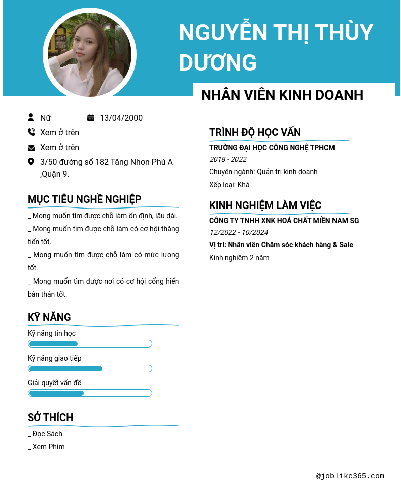Xem hồ sơ ứng viên Nguyễn Thị Thùy Dương cần 2 điểm. Hồ sơ được cập nhật ngày: 28/11/2024