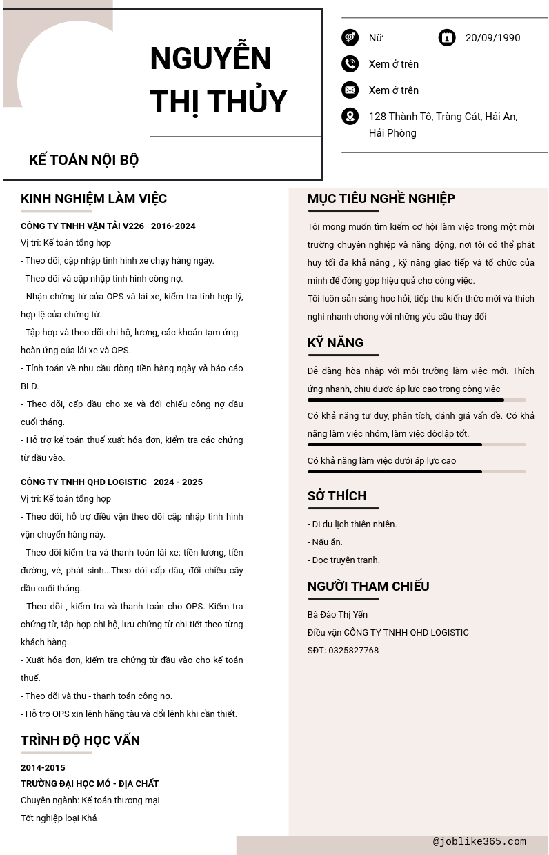 Xem hồ sơ ứng viên nguyễn thị thủy cần 2 điểm. Hồ sơ được cập nhật ngày: 04/11/2025