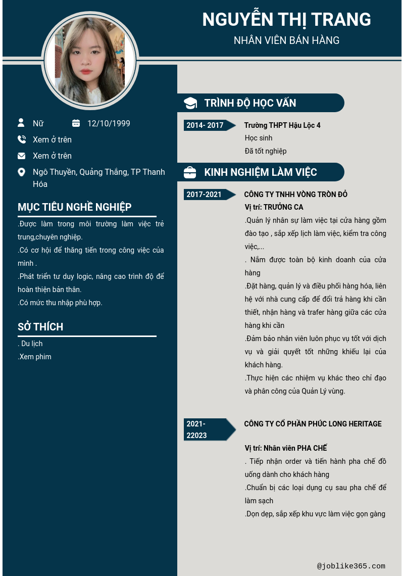 Xem hồ sơ ứng viên nguyễn Thị Trang cần 2 điểm. Hồ sơ được cập nhật ngày: 25/11/2024