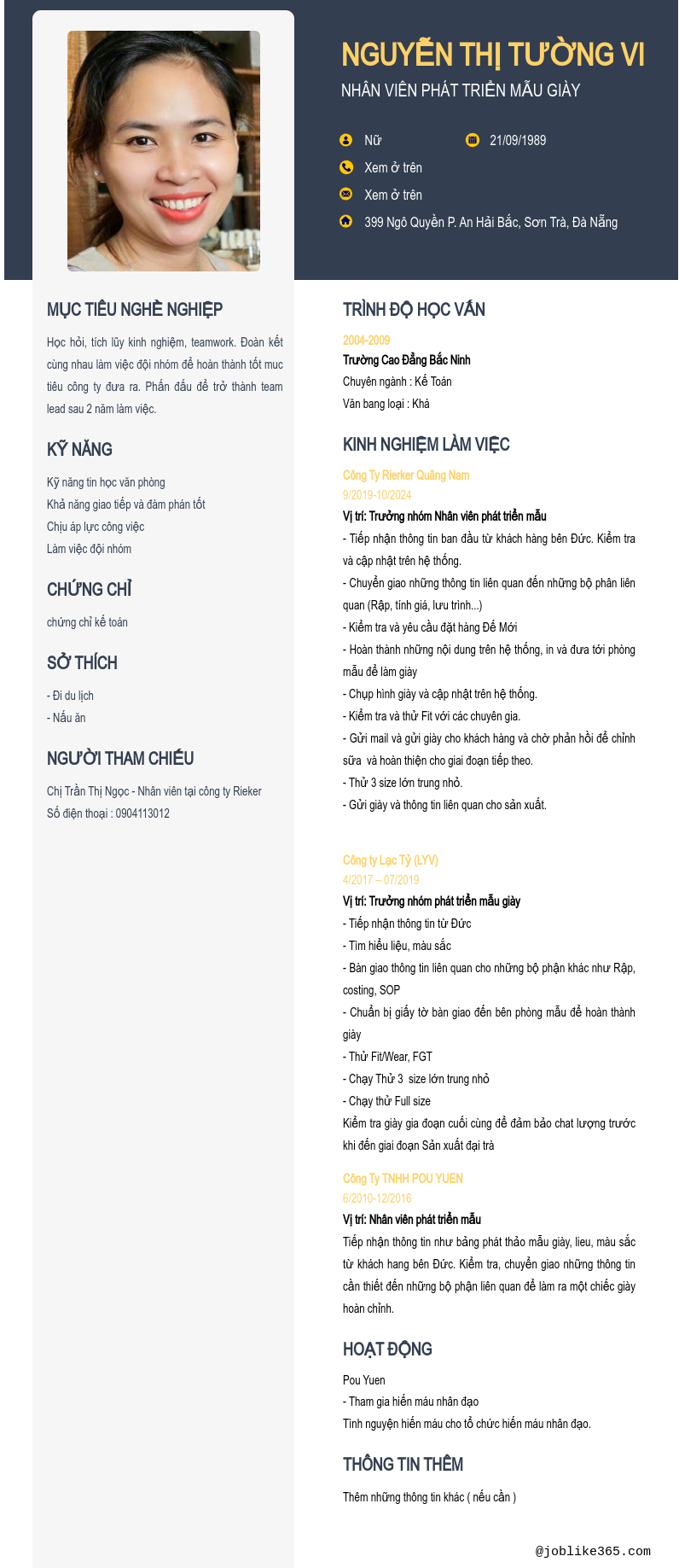 Xem hồ sơ ứng viên Nguyễn thị tường vi cần 2 điểm. Hồ sơ được cập nhật ngày: 10/10/2024