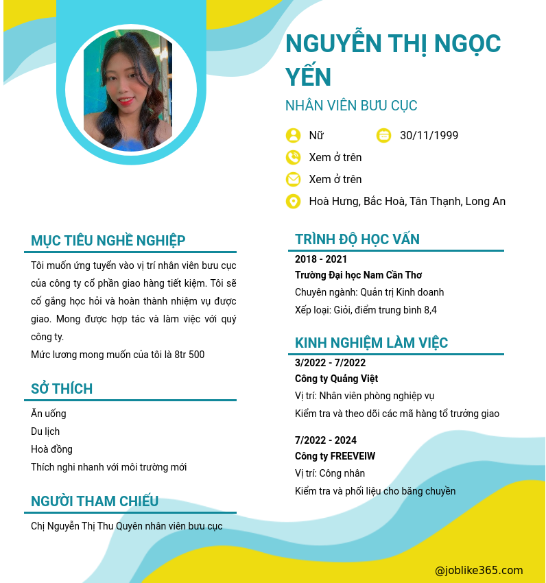 Xem hồ sơ ứng viên NGUYỄN THỊ NGỌC YẾN cần 2 điểm. Hồ sơ được cập nhật ngày: 19/05/2024