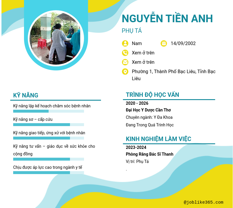 Xem hồ sơ ứng viên Nguyễn Tiền Anh cần 2 điểm. Hồ sơ được cập nhật ngày: 08/10/2024
