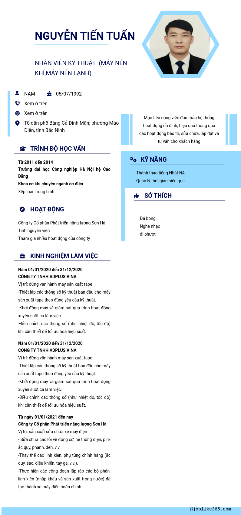 Xem hồ sơ ứng viên Nguyễn Tiến Tuấn cần 2 điểm. Hồ sơ được cập nhật ngày: 24/11/2025