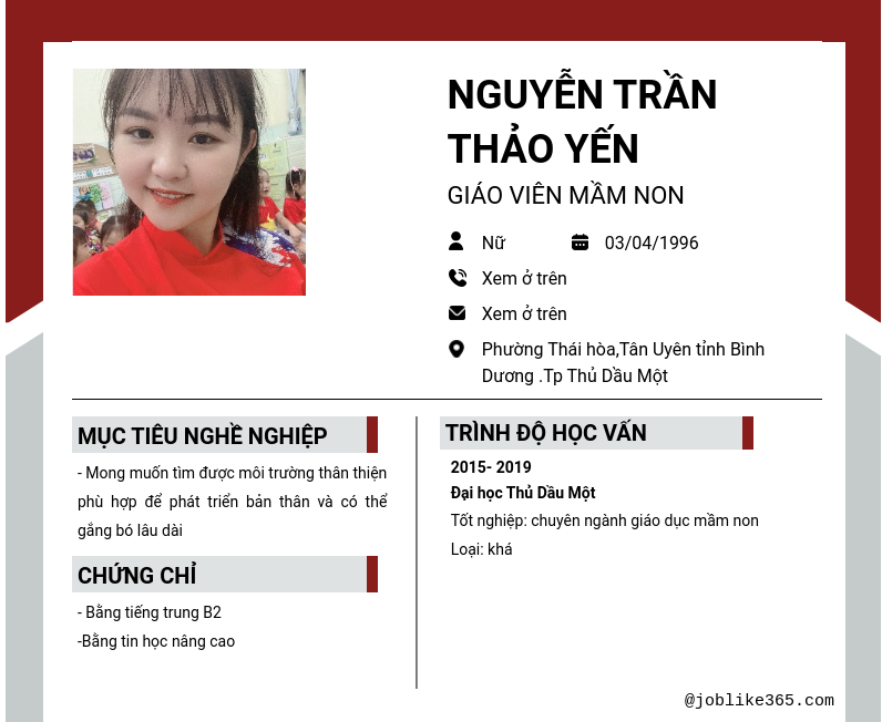 Xem hồ sơ ứng viên Nguyễn Trần Thảo Yến cần 2 điểm. Hồ sơ được cập nhật ngày: 13/06/2025