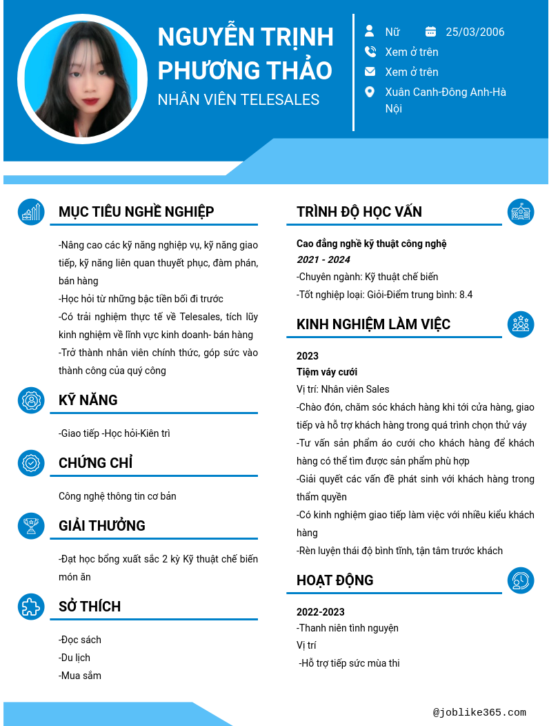 Xem hồ sơ ứng viên Nguyễn trịnh phương thảo cần 2 điểm. Hồ sơ được cập nhật ngày: 21/12/2024