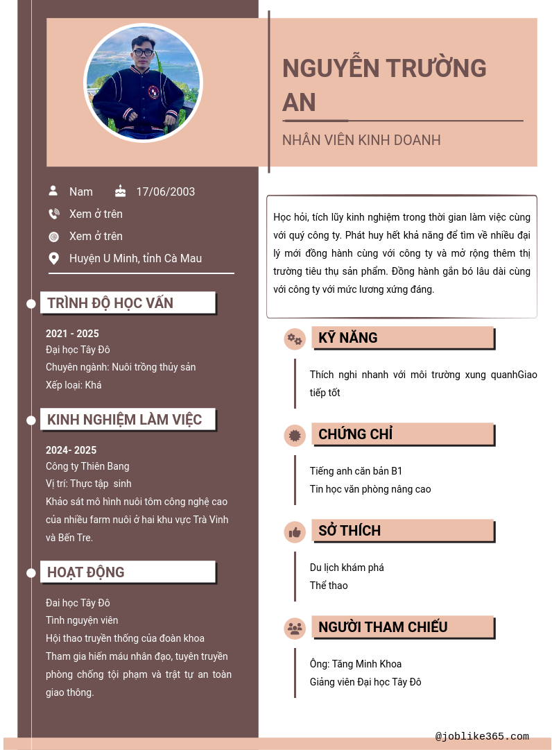 Xem hồ sơ ứng viên NGUYỄN TRƯỜNG AN cần 2 điểm. Hồ sơ được cập nhật ngày: 21/09/2024