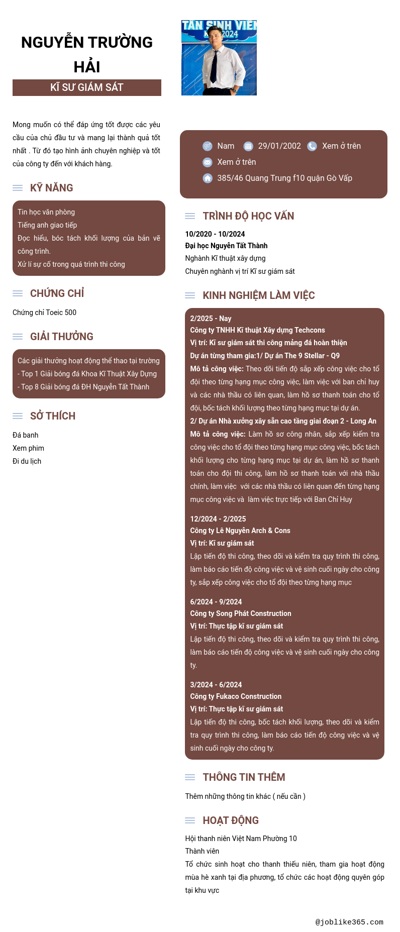Xem hồ sơ ứng viên Nguyễn Trường Hải cần 2 điểm. Hồ sơ được cập nhật ngày: 16/12/2025