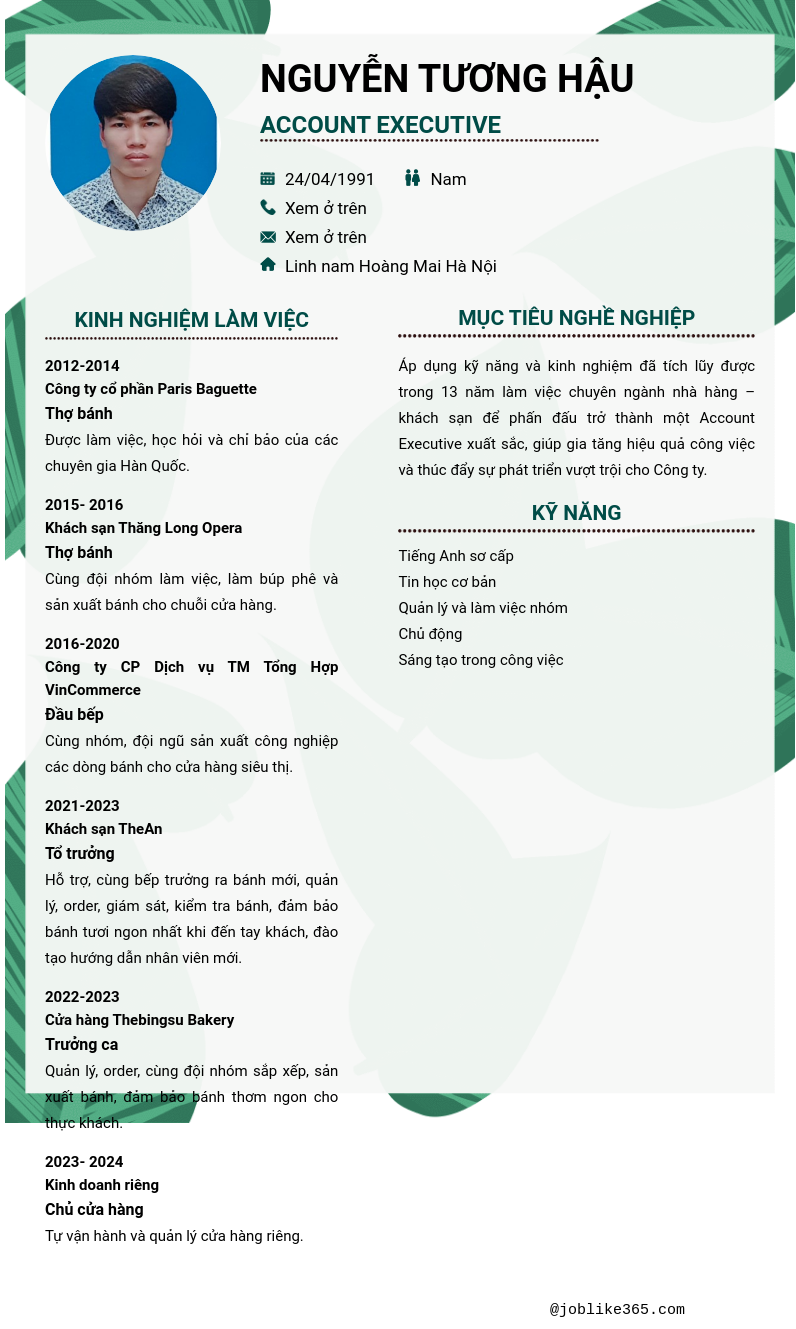 Xem hồ sơ ứng viên Nguyễn Tương Hậu cần 2 điểm. Hồ sơ được cập nhật ngày: 13/11/2025