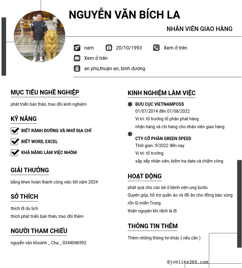Xem hồ sơ ứng viên nguyễn văn bích la cần 2 điểm. Hồ sơ được cập nhật ngày: 06/01/2025