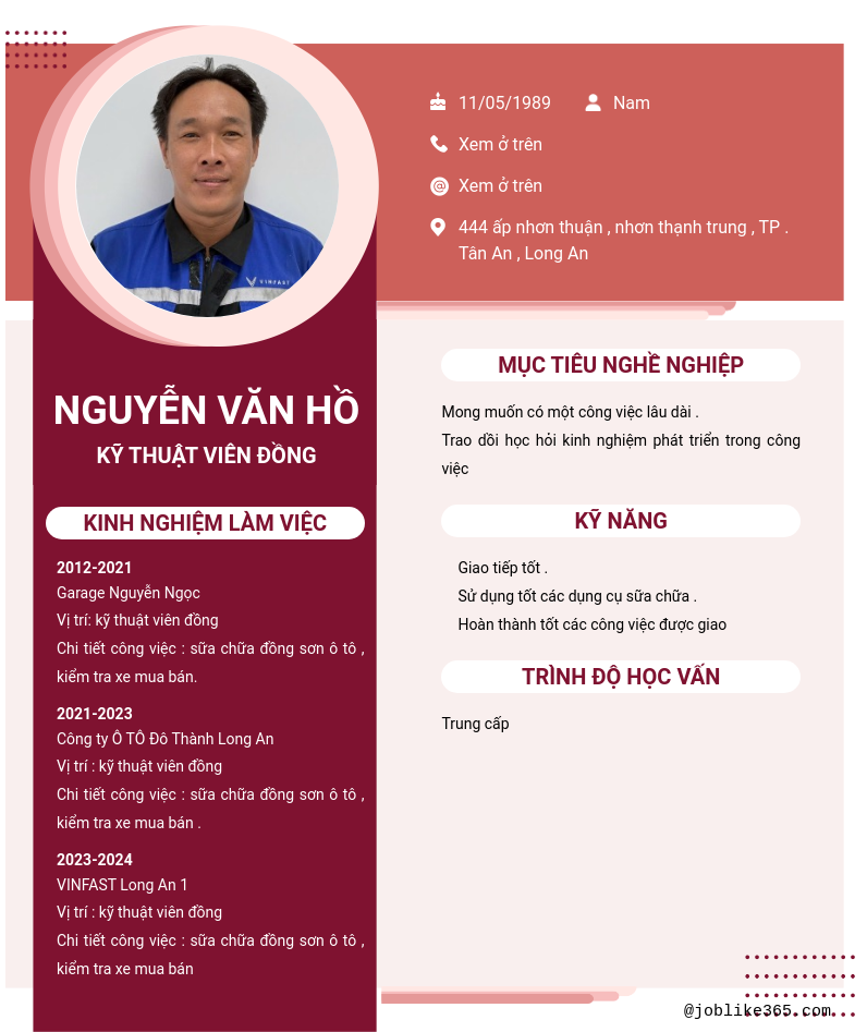 Xem hồ sơ ứng viên Nguyễn văn hồ cần 2 điểm. Hồ sơ được cập nhật ngày: 15/12/2024