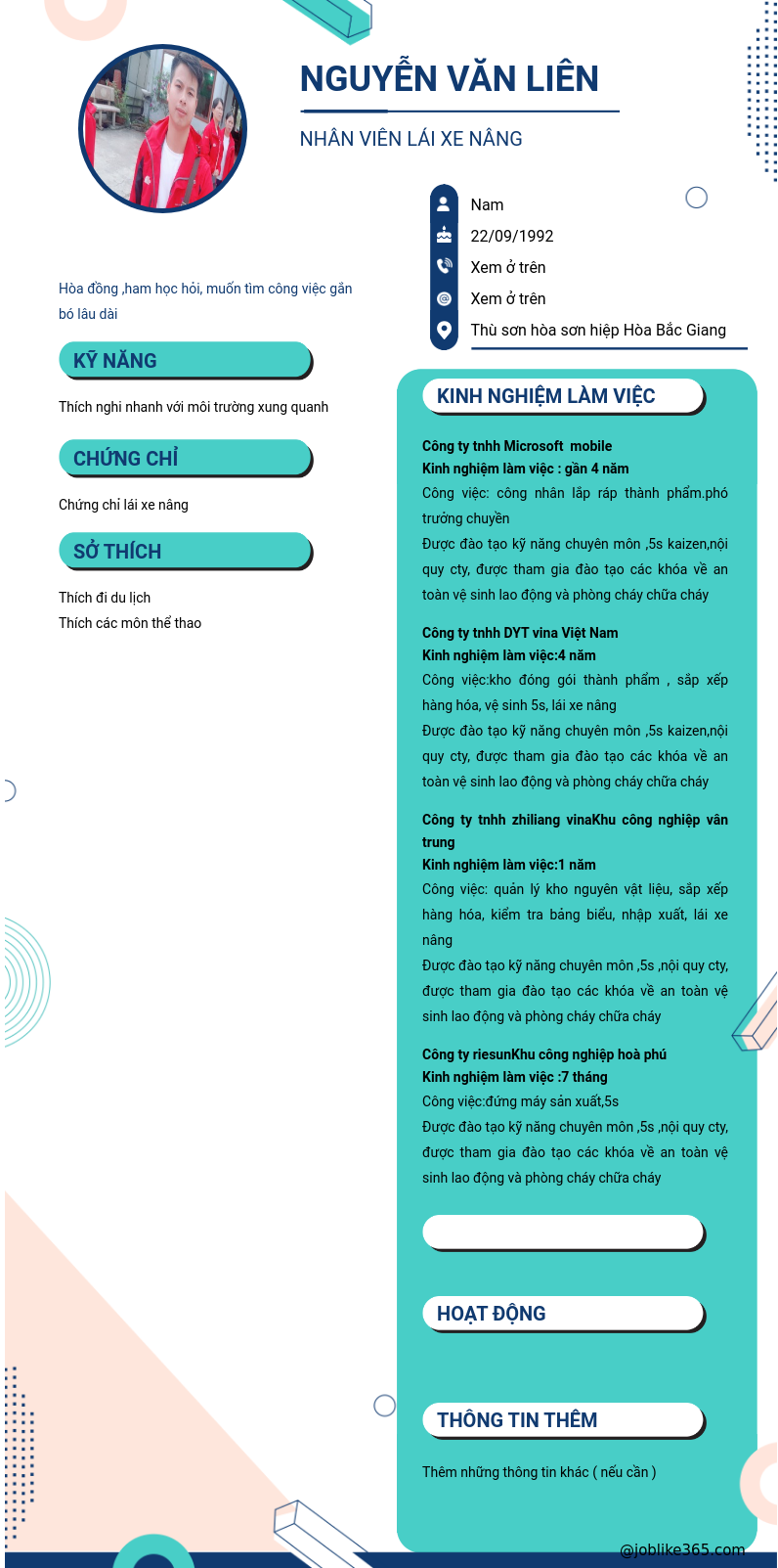 Xem hồ sơ ứng viên NGUYỄN VĂN LIÊN cần 2 điểm. Hồ sơ được cập nhật ngày: 21/05/2024