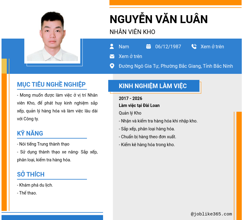 Xem hồ sơ ứng viên NGUYỄN VĂN LUÂN cần 2 điểm. Hồ sơ được cập nhật ngày: 10/03/2026