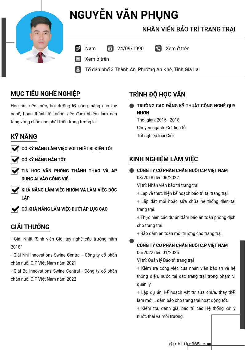 Xem hồ sơ ứng viên NGUYỄN VĂN PHỤNG cần 2 điểm. Hồ sơ được cập nhật ngày: 08/10/2025