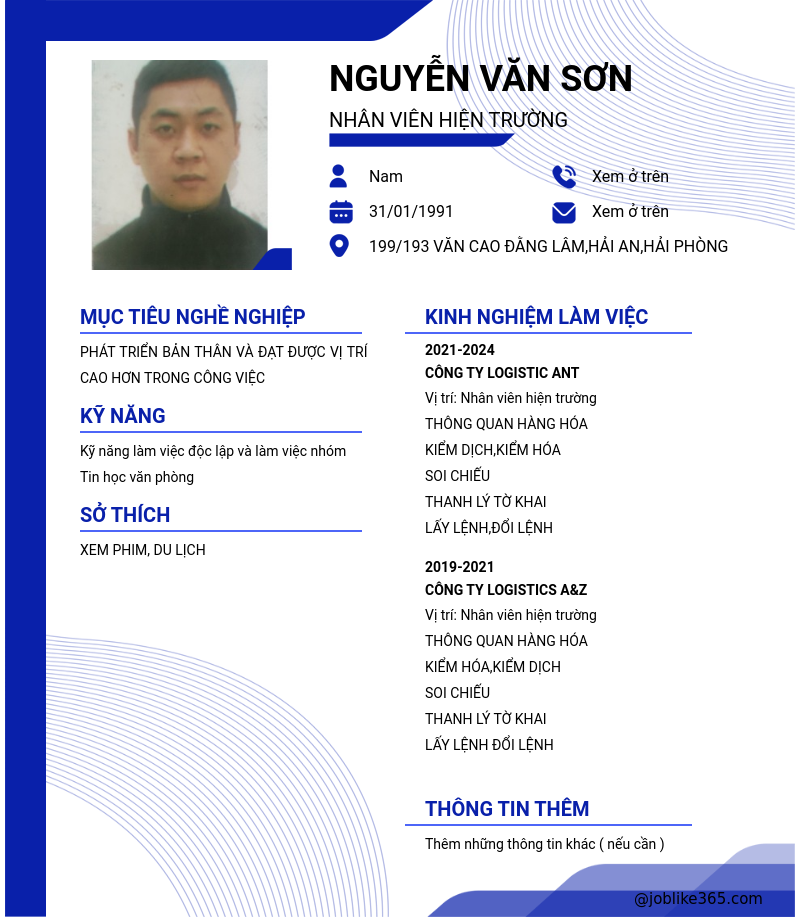 Xem hồ sơ ứng viên NGUYỄN VĂN SƠN cần 2 điểm. Hồ sơ được cập nhật ngày: 01/06/2024