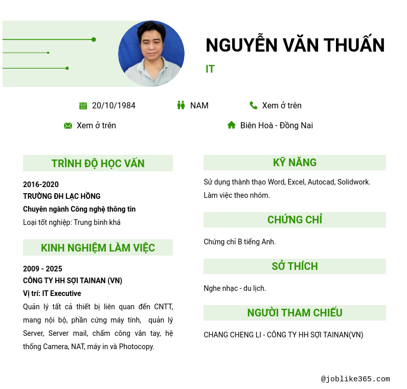 Xem hồ sơ ứng viên nguyỄN VĂN THUẤN cần 2 điểm. Hồ sơ được cập nhật ngày: 05/03/2026