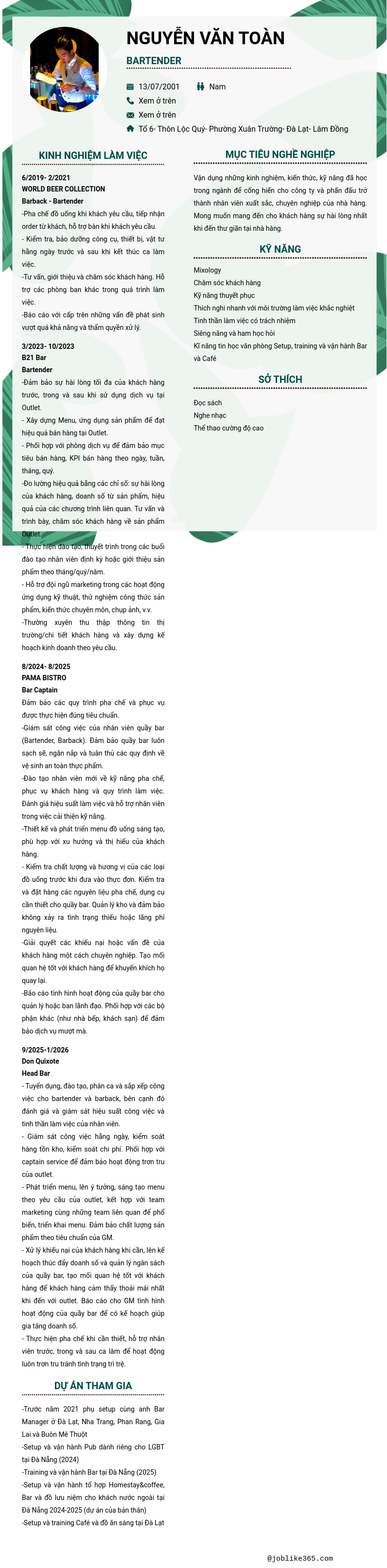 Xem hồ sơ ứng viên NGUYỄN VĂN TOÀN cần 2 điểm. Hồ sơ được cập nhật ngày: 02/04/2026