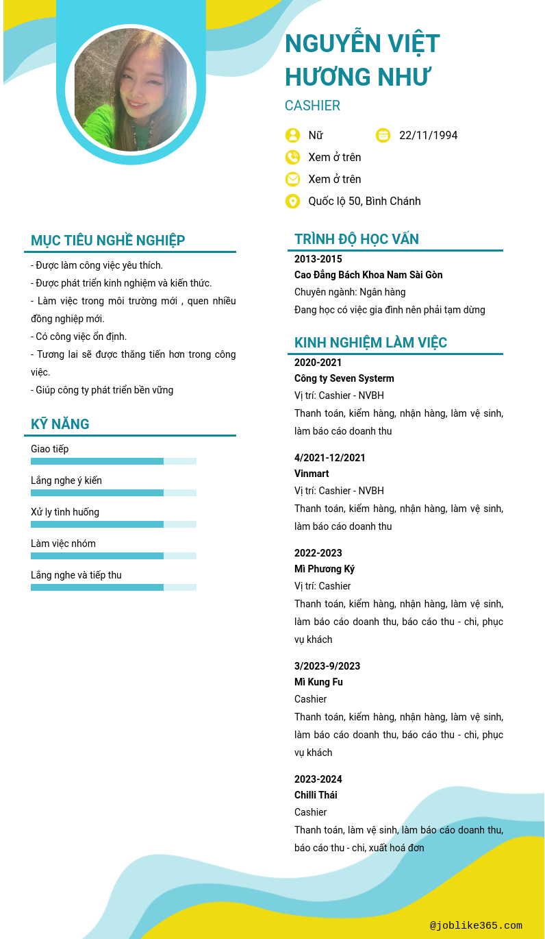 Xem hồ sơ ứng viên Nguyễn Việt Hương Như cần 2 điểm. Hồ sơ được cập nhật ngày: 19/08/2024