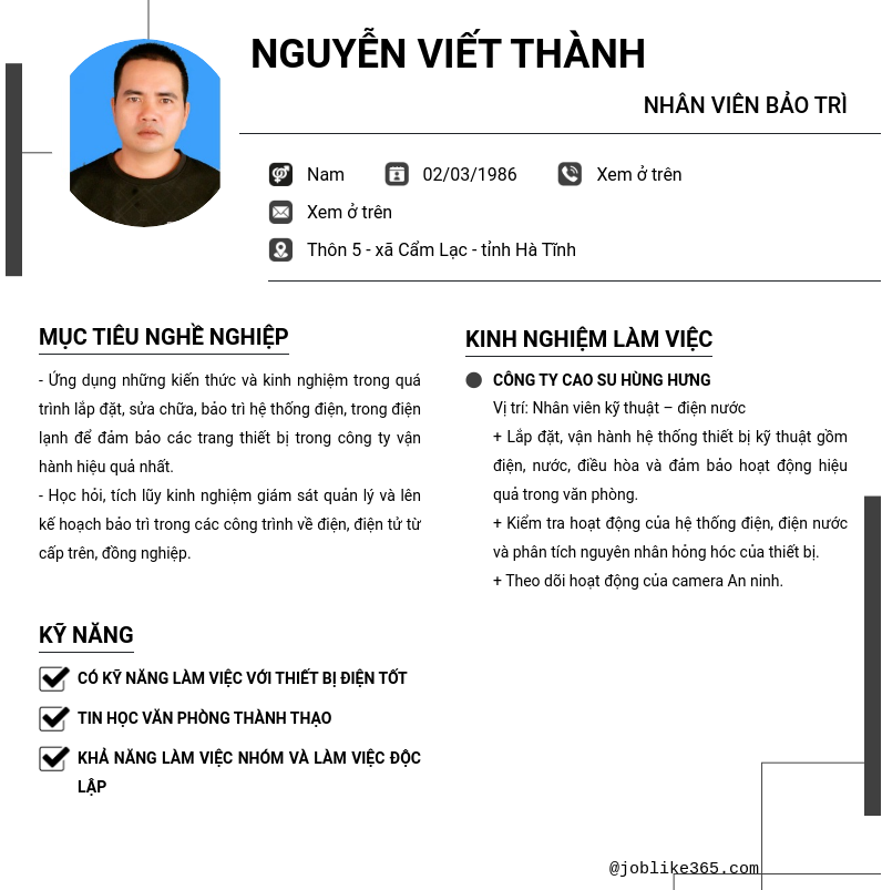 Xem hồ sơ ứng viên nguyễn viết thành cần 2 điểm. Hồ sơ được cập nhật ngày: 18/03/2026