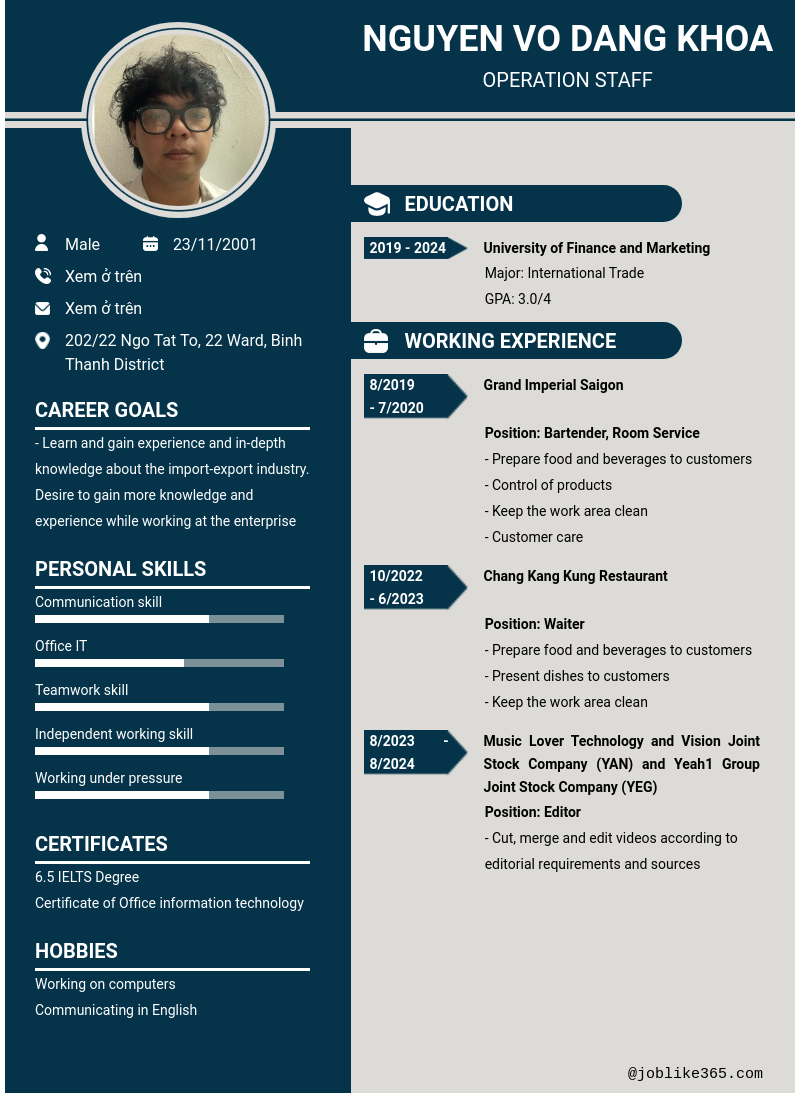 Xem hồ sơ ứng viên NGUYEN VO DANG KHOA cần 2 điểm. Hồ sơ được cập nhật ngày: 30/08/2024