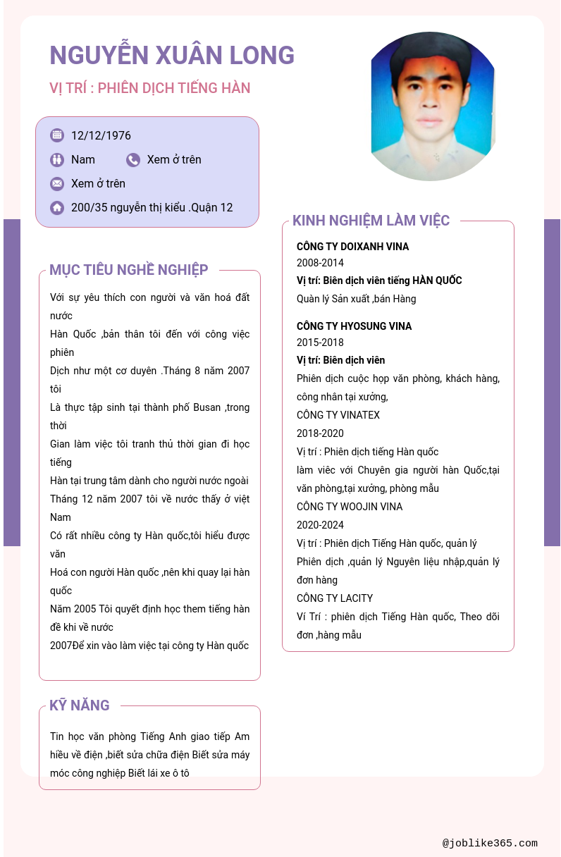 Xem hồ sơ ứng viên nguyễn xuân long cần 2 điểm. Hồ sơ được cập nhật ngày: 10/08/2025