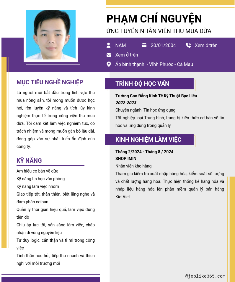 ỨNG TUYỂN Nhân viên thu mua dừa