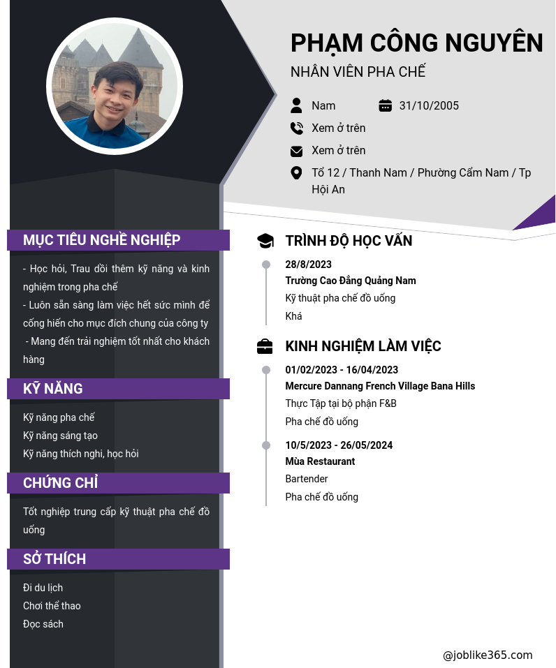 Xem hồ sơ ứng viên PHẠM CÔNG NGUYÊN cần 2 điểm. Hồ sơ được cập nhật ngày: 27/05/2024