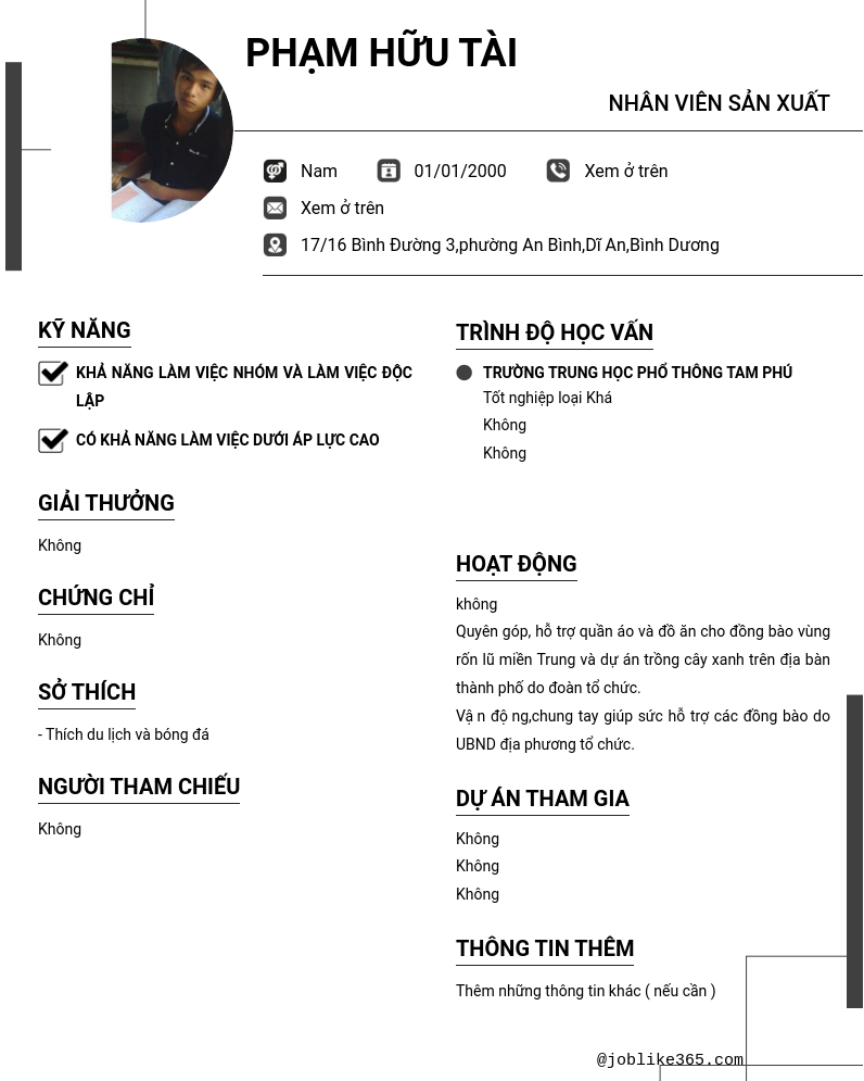 Xem hồ sơ ứng viên Phạm Hữu Tài cần 2 điểm. Hồ sơ được cập nhật ngày: 16/04/2025