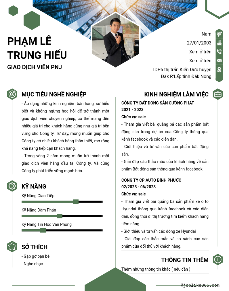 Xem hồ sơ ứng viên PHẠM LÊ TRUNG HIẾU cần 2 điểm. Hồ sơ được cập nhật ngày: 24/05/2024