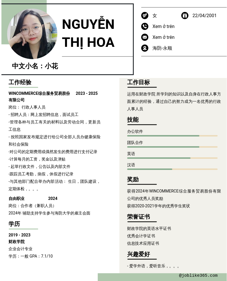 Xem hồ sơ ứng viên nguyễn thị hoa cần 2 điểm. Hồ sơ được cập nhật ngày: 10/07/2025