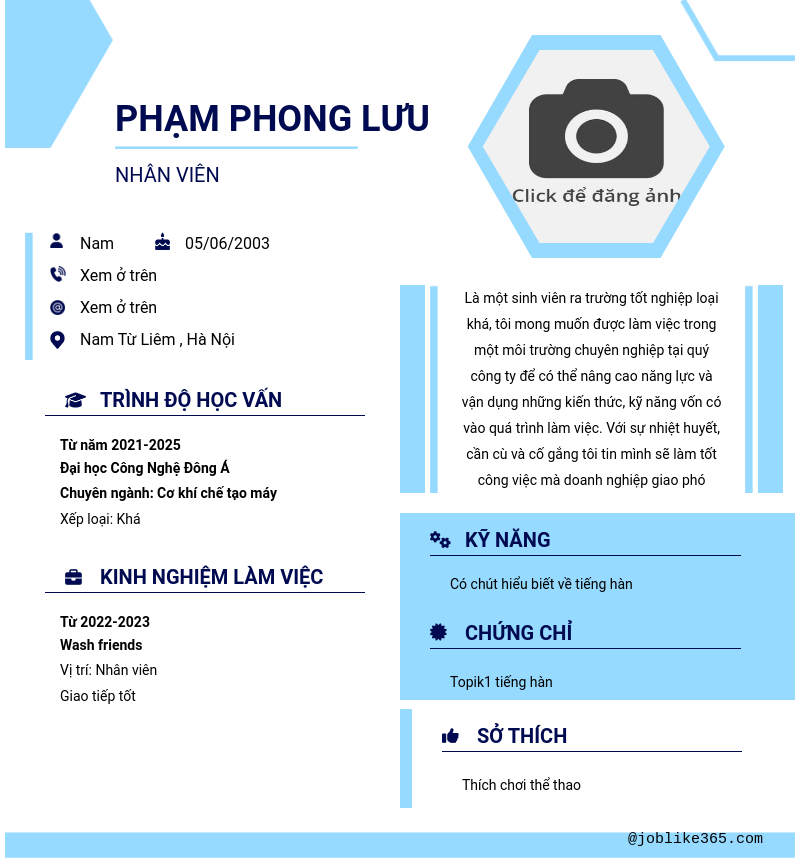 Xem hồ sơ ứng viên Phạm Phong Lưu cần 2 điểm. Hồ sơ được cập nhật ngày: 29/10/2024