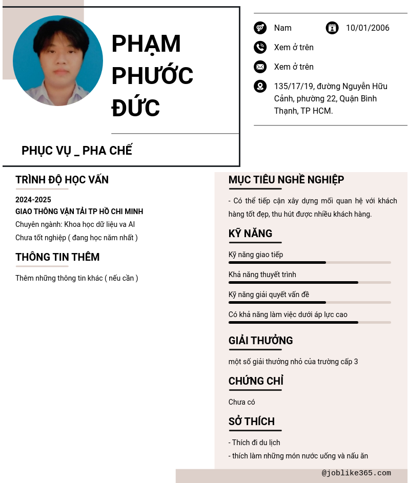 Xem hồ sơ ứng viên Phạm Phước Đức cần 2 điểm. Hồ sơ được cập nhật ngày: 08/10/2024