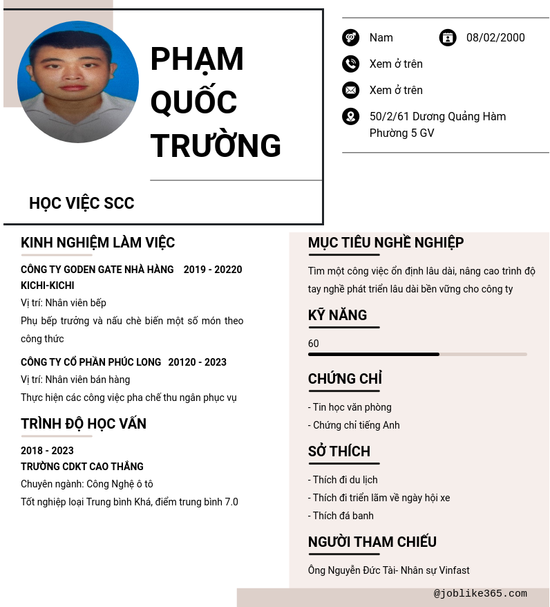 Xem hồ sơ ứng viên Phạm Quốc Trường cần 2 điểm. Hồ sơ được cập nhật ngày: 11/06/2025
