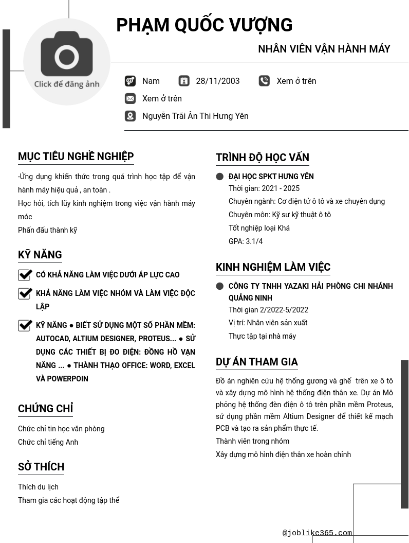 Xem hồ sơ ứng viên PHẠm quốc vượng cần 2 điểm. Hồ sơ được cập nhật ngày: 08/08/2025