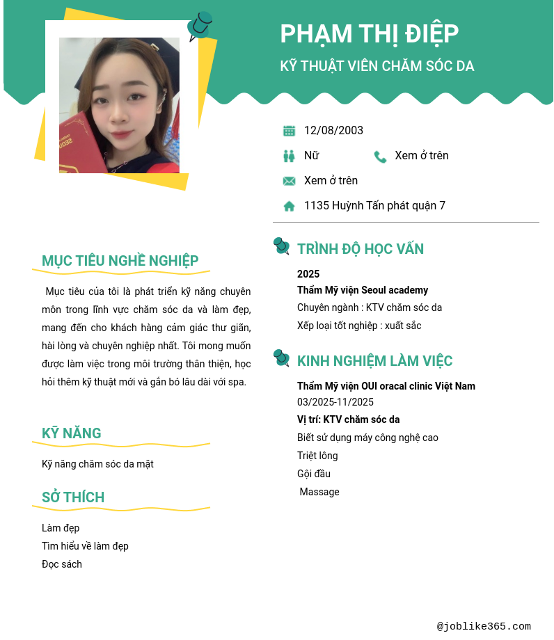 Xem hồ sơ ứng viên Phạm Thị Điệp cần 2 điểm. Hồ sơ được cập nhật ngày: 24/10/2025