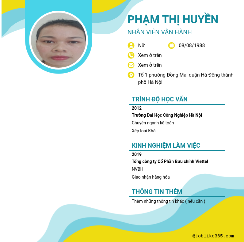 Xem hồ sơ ứng viên PHẠM THỊ HUYỀN cần 2 điểm. Hồ sơ được cập nhật ngày: 15/04/2025