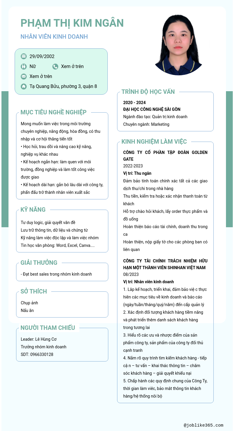 Xem hồ sơ ứng viên PHẠM THỊ KIM NGÂN cần 2 điểm. Hồ sơ được cập nhật ngày: 21/10/2024