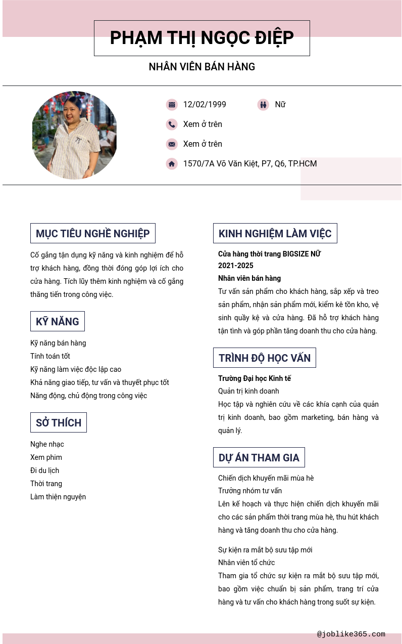 Xem hồ sơ ứng viên PHẠM THỊ NGỌC ĐIỆP cần 2 điểm. Hồ sơ được cập nhật ngày: 10/05/2025