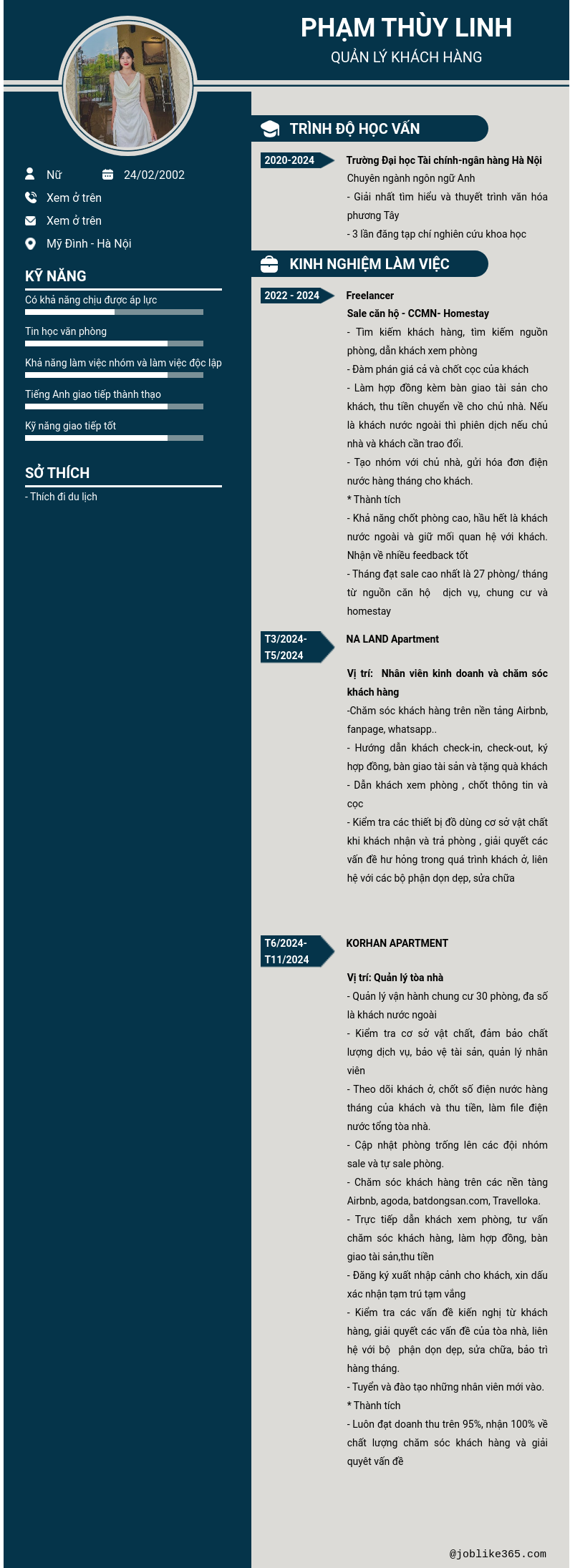 Xem hồ sơ ứng viên Phạm thùy Linh cần 2 điểm. Hồ sơ được cập nhật ngày: 07/11/2024
