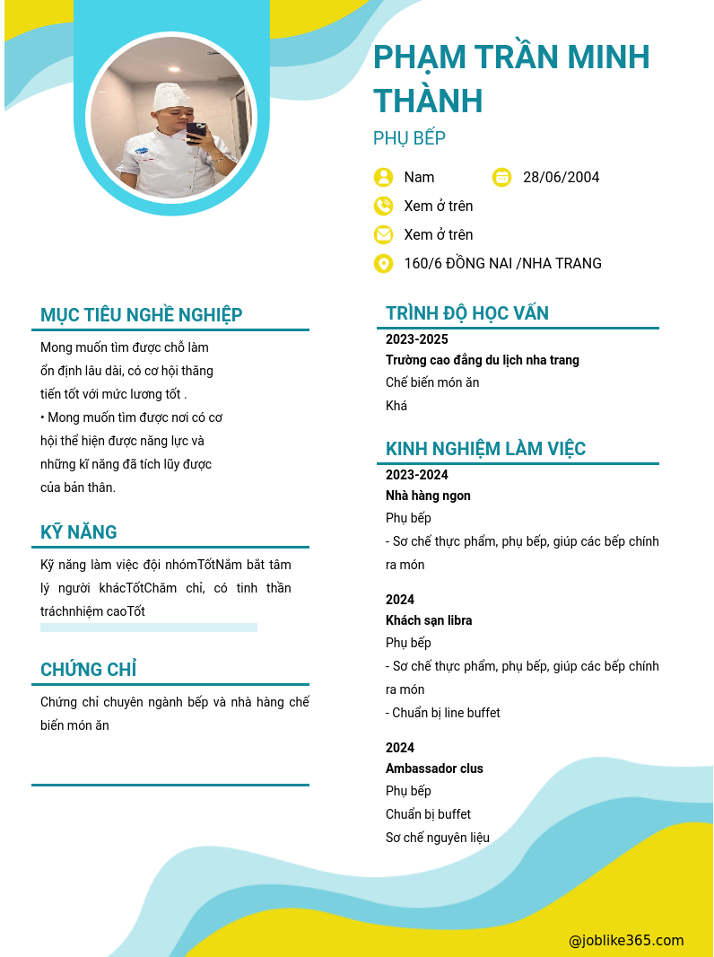 Xem hồ sơ ứng viên PHẠM TRẦN MINH THÀNH cần 2 điểm. Hồ sơ được cập nhật ngày: 28/05/2025