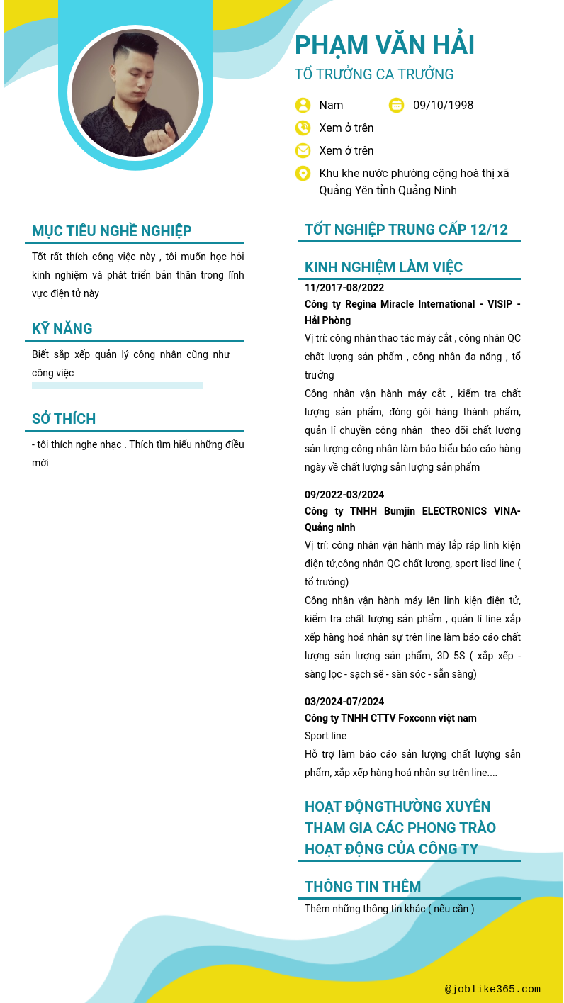 Xem hồ sơ ứng viên Phạm Văn Hải cần 2 điểm. Hồ sơ được cập nhật ngày: 13/07/2024