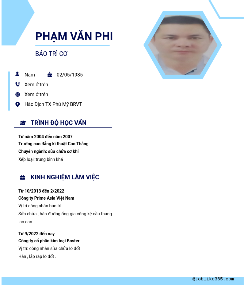 Xem hồ sơ ứng viên Phạm Văn Phi cần 2 điểm. Hồ sơ được cập nhật ngày: 07/01/2025